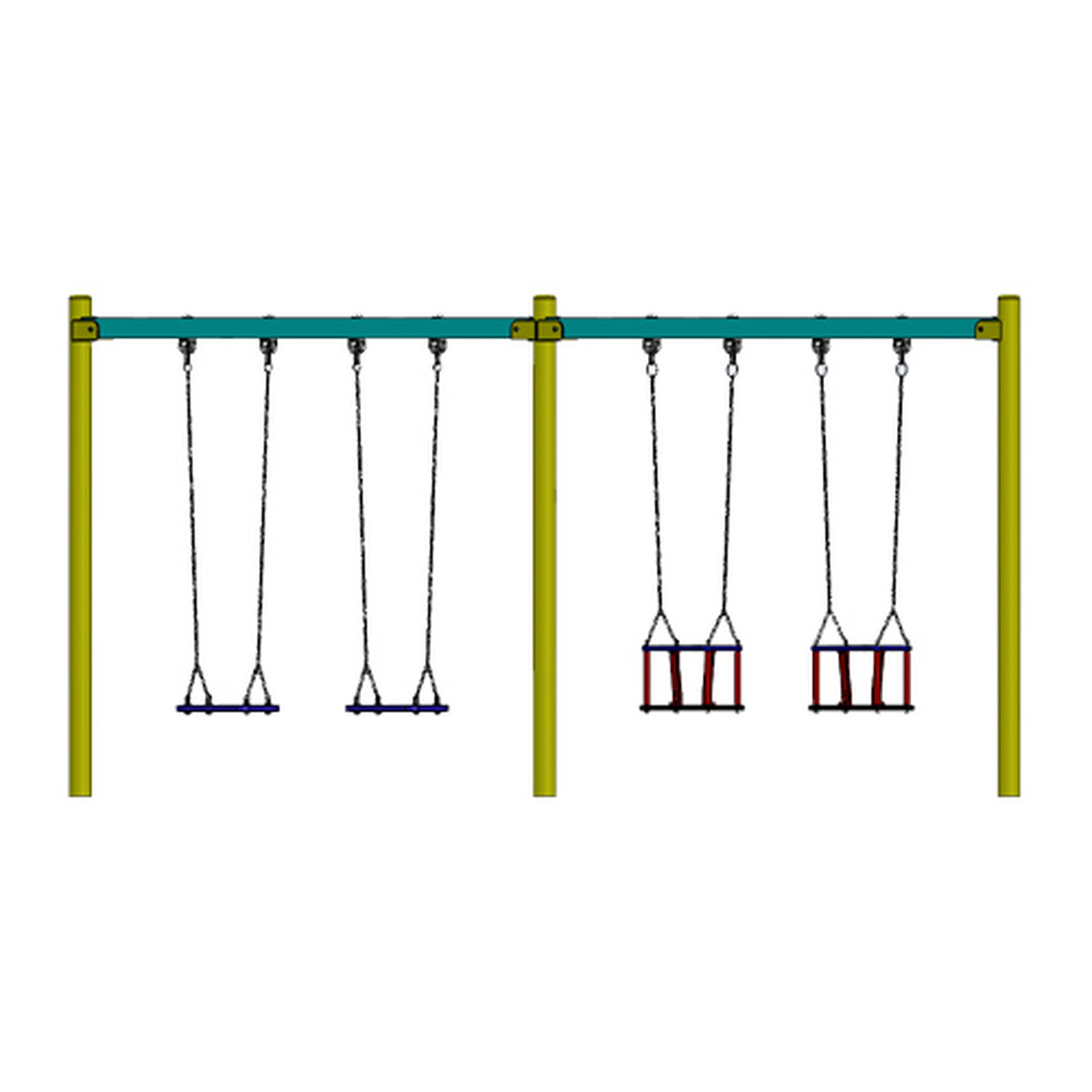 Négyszemélyes fém hintaállvány 2 db laphintával és 2 db bébihintával
